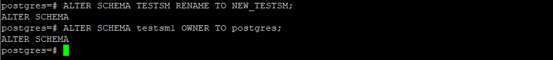 (1) ALTER SCHEMA [schema_name] RENAME TO [new_name];