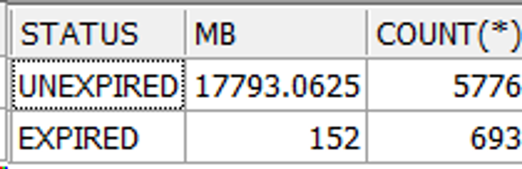 | EXPIRED EXTENT | undo_retention 시간을 초과한 Extent. 사용 중인 트랜잭션이 없고 undo retention 도 완료되어서 언제든지 트랜잭션에 할당될 수 있는 상태 |
