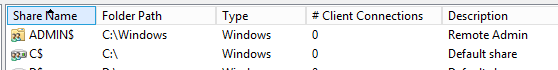 IPC$만 확인되어 패치/설치/업그레이드 수행 시 C$, ADMIN$가 공유되어야함.