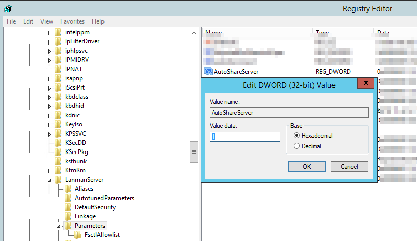 Path : HKEY_LOCAL_MACHINE\\System\\CurrentControlSet\\Services\\LanmanServer\\Parameters