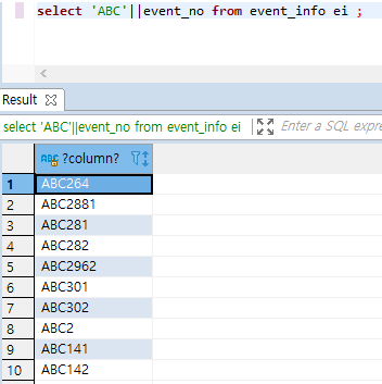 SELECT 'ABC'||event_no FROM event_info;