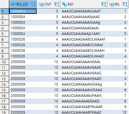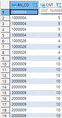 COUNT(*) OVER(PARTITION BY RA.RN_CD) AS CNT,