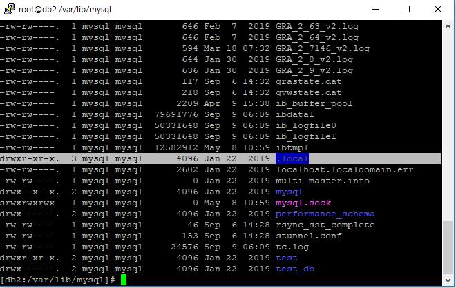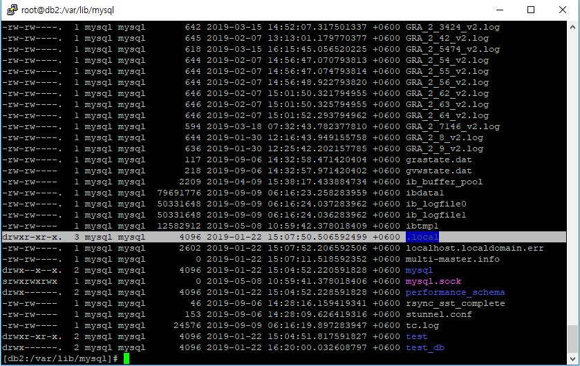 mysql이 설치된 폴더에 .local 이라는 directory가 있는데 어떻게 생성된 폴더인지 확인하려고 이것저것 명령어를 입력해 봅니다..